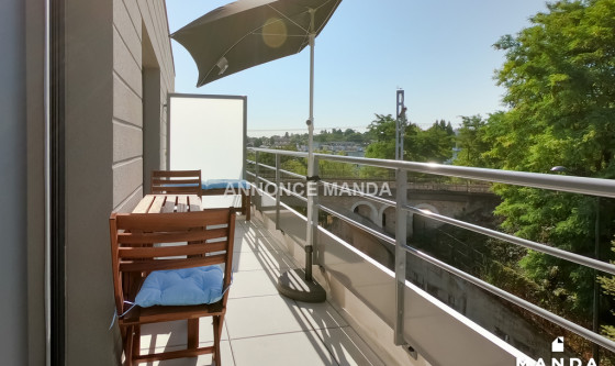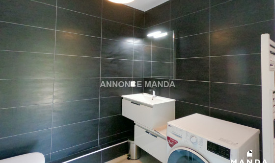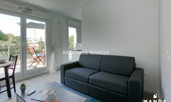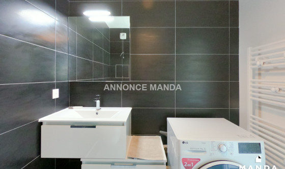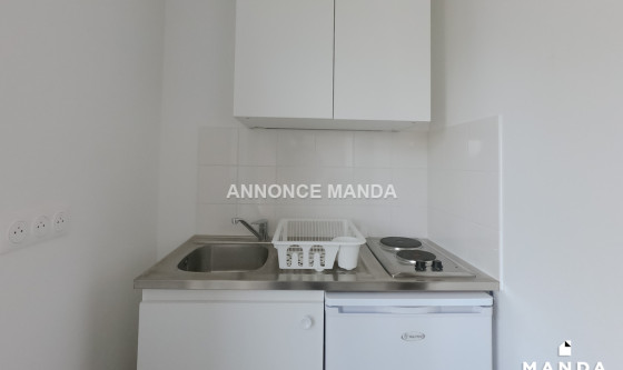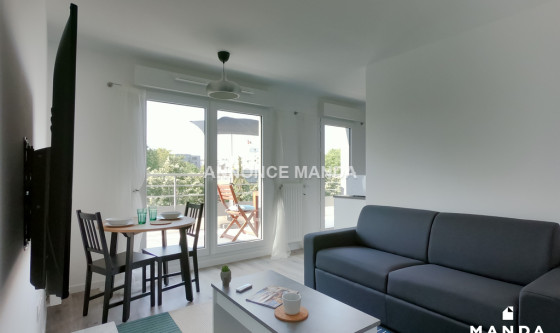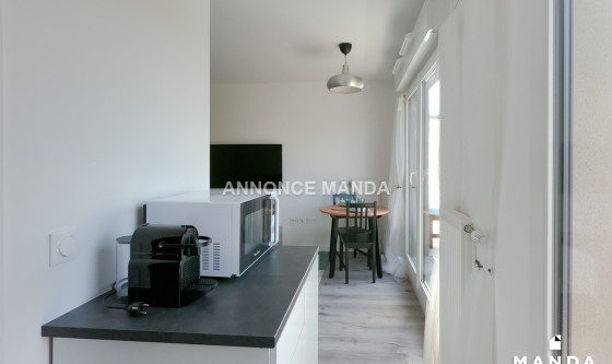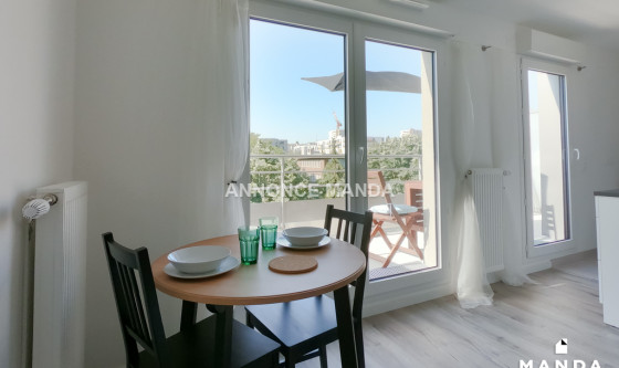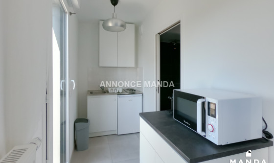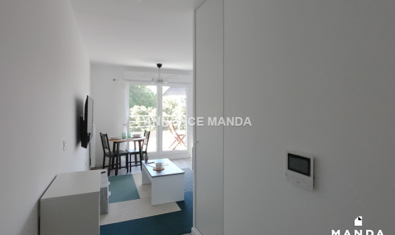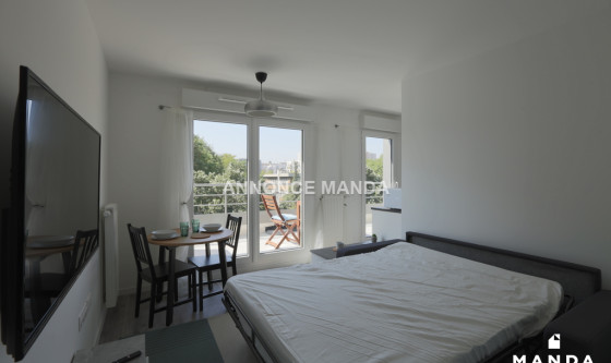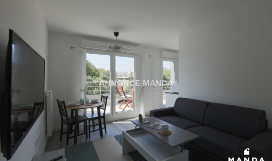 Logement Manda ! Ce T1 meublé en location est situé 4ème et dernier étage avec ascenseur ainsi qu'une grande terrasse plein sud pour profiter pleinement du soleil. Le couloir d'entrée dispose d'un rangement à chaussure et d'un visiophone. La pièce de vie dispose d'un canapé lit, d'une table basse avec plateau permettant de l'utiliser comme table, d'un meuble TV avec TV 50'', d'une table avec deux chaises et d'un grand dressing de rangement. Une grande baie vitrée donnant accès à la terrasse avec des volets roulant électrique. La cuisine dispose d'un plan de travail avec évier, plaques de cuisson, réfrigérateur, d'un four micro onde combiné, d'une machine à café Nespresso, étagères et placards de rangement contenant de la vaisselle. Une porte fenêtre donnant accès à la terrasse avec volet roulant électrique. La salle d'eau dispose d'une grande cabine de douche, d'une vasque avec rangement, de WC et d'un lave-linge séchant. La terrasse d'une grandeur de 7m2 orienté plein Sud dispose d'une table avec deux chaises, d'un parasol et d'un banc avec coussin. Il comprend également une place de parking inclue dans l'immeuble. Ce très joli T1 en location est idéal pour un jeune actif ou un étudiant. À saisir ! Référence du bien : MANDA-04521