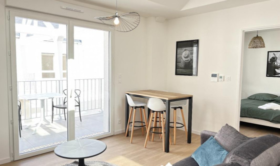 T2 MEUBLE AVEC SERVICES. FOUGERES PROCHE DU CENTRE HOSPITALIER | RUE PIPON | Appartement meublé T2 de 36m², dans une résidence neuve, comprenant une pièce de vie avec cuisine équipée et aménagée (plaque, four, hotte, réfrigérateur) - et balcon - une chambre avec placard, une salle d'eau avec WC. Service de ménage et de linge compris dans le loyer. Garage fermé privatif. Disponible de suite. Loyer : 573,00 euros charges comprises (entretien parties communes, services ménage et linge). Honoraires charge locataire : 402,00 euros dont 110,00 euros pour la réalisation de l'état des lieux. Dépôt de garantie : 2 mois de loyer HC et HT. Résidence avec belles prestations : présence d'un concierge, communs décorés REF C21 Updated on 15/10/2025 Mise à jour le 15/10/2025