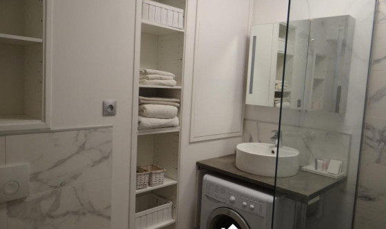 Au 1er étage d'un immeuble classé Perret. bel appartement de 36m²: cuisine équipée, espace salon, chambre, salle de bain. Parquet massif, lave-vaisselle, lave linge, four, TV. Hyper centre, idéalement situé, à 200 m de la plage et 200m de la mairie, au square St Roch. À pied: 2 min du tram et du square St Roch, 5 min de la plage, 6 min du centre ville et des Halles. Updated on 09/12/2025 Mise à jour le 09/12/2025
