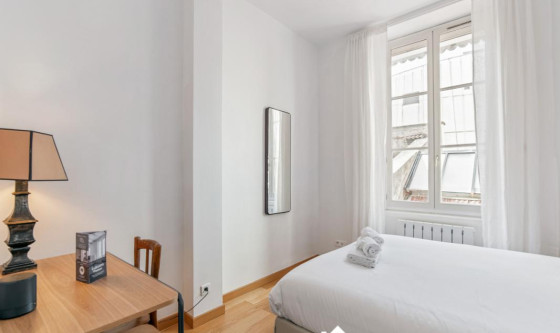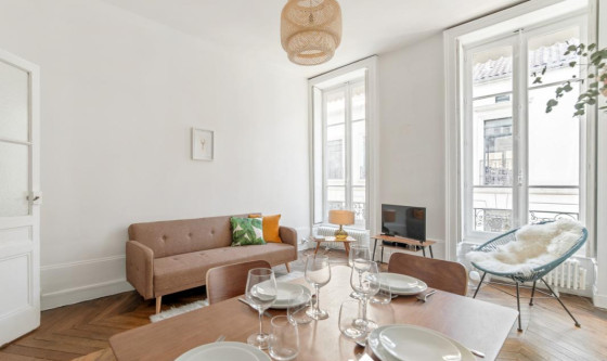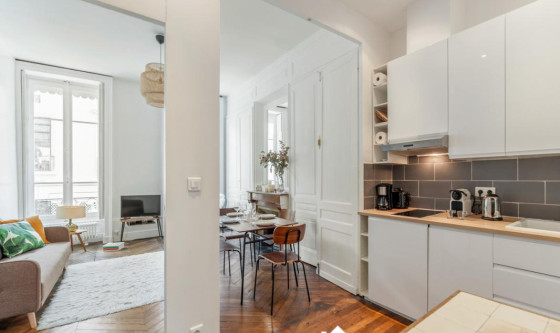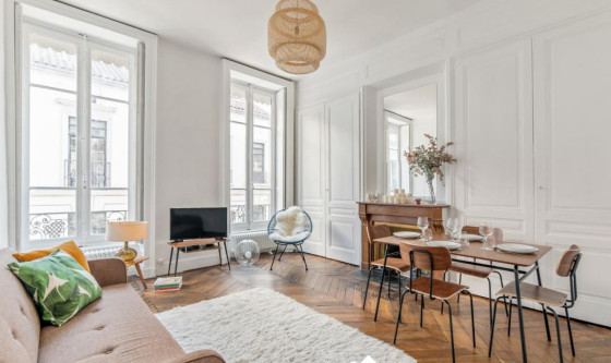 Situé au coeur de la Presqu'île, cet appartement est idéal pour accueillir 2 personnes. Proche de commerces et des transports, cet appartement est parfait pour habiter à Lyon. Appartement refait à neuf de 45 m² situé au 2e étage sans ascenseur. Ce logement bourgeois avec moulures et parquet est composé de : - un salon charmant, - une cuisine entièrement équipée (bouilloire, machine à café, grille-pain, four, micro-ondes, plaques de cuisson, lave-vaisselle, frigo), - une chambre avec lit double, - une salle de bain avec baignoire, - aspirateur, produits ménagers, matériel de repassage, sèche cheveux, - des rangements, - TV et Wi-Fi. Le logement ne comprend pas de place de parking mais vous avez la possibilité de vous garer dans un parking public (Parking Centre d'échange Perrache, Parking Q-Park) Des frais de gestion d'un montant de 585€ vous seront demandés avant votre entrée dans les lieux. Ces frais comprennent l'état des lieux d'entrée et de sortie ainsi que les frais de ménage. Updated on 18/11/2025 Mise à jour le 18/11/2025