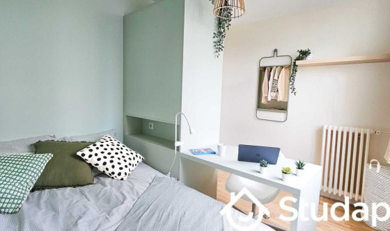 ##Space Nichée au 1er étage d'une résidence moderne avec ascenseur, cette chambre privée de 9,5 m² se trouve dans un appartement de 83 m² élégant et parfaitement équipé. Idéale pour un étudiant ou un jeune actif, elle offre un cadre de vie paisible et convivial, au cœur du quartier dynamique de Philippe Fabia, dans le 8ᵉ arrondissement de Lyon. L'appartement se situe à proximité immédiate des transports en commun, des commerces, des restaurants et des espaces verts, permettant de rejoindre facilement le centre-ville et les pôles universitaires lyonnais. Votre chambre privative comprend : Lit double confortable Un espace de travail avec un bureau Rangements Accès aux espaces communs : Un grand séjour chaleureux et convivial, comprenant un canapé, une télévision, une table à manger et une table d'appoint Une cuisine ouverte entièrement équipée : réfrigérateur, congélateur, four, micro-ondes, lave-vaisselle, machine à café, bouilloire, grille-pain… tout est prévu pour cuisiner comme à la maison Une salle de bain avec baignoire et lavabo Un WC séparé Un lave-linge à disposition pour plus de confort Les atouts de cette colocation : Connexion Internet haut débit (WiFi) incluse Draps et serviettes de qualité fournis Résidence moderne, calme et bien entretenue Quartier résidentiel, sécurisé et très bien desservi ##Access Vous aurez accès à votre chambre privée, ainsi qu'à tous les espaces communs (séjour, cuisine, salle de bain, WC). ##Interaction L'équipe Checkmyguest reste à votre disposition de 9h à 23h, par téléphone ou SMS, pour répondre à vos questions et veiller à ce que votre séjour se déroule dans les meilleures conditions. ##Neighborhood L'appartement est situé dans le quartier des États-Unis – Viviani, un secteur vivant et agréable du 8ᵉ arrondissement de Lyon, très apprécié pour sa tranquillité, sa proximité avec les universités et son accès rapide au centre-ville. À proximité immédiate : Boulangeries, supermarchés, épiceries Restaurants, cafés et brasseries conviviales Espaces verts et pistes cyclables pour vos balades Accès rapide aux campus universitaires et hôpitaux lyonnais Quelques adresses recommandées : Aux Phils des Saveurs – restaurant chaleureux avec terrasse, cuisine traditionnelle présentée de façon créative Tranche : €€ Restaurant New Fork – restaurant moderne et convivial, parfait pour se restaurer Tranche : €€ ## Transit L'appartement bénéficie d'un excellent emplacement : Tramway T4 – station États-Unis Viviani à 6 minutes à pied (accès direct au centre de Lyon et aux pôles universitaires) Plusieurs lignes de bus à proximité immédiate Accès facile au périphérique et aux grands axes routiers ##Notes Cette réservation implique le versement d'une caution ainsi que la signature d'un contrat. Ces dispositions garantissent la sécurité et la transparence de votre séjour (tous les détails seront précisés lors de la réservation) Updated on 03/10/2025 Mise à jour le 03/10/2025