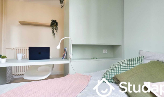##Space Nichée au 1er étage d'une résidence moderne avec ascenseur, cette chambre privée de 9,5 m² se trouve dans un appartement de 83 m² élégant et parfaitement équipé. Idéale pour un étudiant ou un jeune actif, elle offre un cadre de vie paisible et convivial, au cœur du quartier dynamique de Philippe Fabia, dans le 8ᵉ arrondissement de Lyon. L'appartement se situe à proximité immédiate des transports en commun, des commerces, des restaurants et des espaces verts, permettant de rejoindre facilement le centre-ville et les pôles universitaires lyonnais. Votre chambre privative comprend : Lit double confortable Un espace de travail avec un bureau Rangements Accès aux espaces communs : Un grand séjour chaleureux et convivial, comprenant un canapé, une télévision, une table à manger et une table d'appoint Une cuisine ouverte entièrement équipée : réfrigérateur, congélateur, four, micro-ondes, lave-vaisselle, machine à café, bouilloire, grille-pain… tout est prévu pour cuisiner comme à la maison Une salle de bain avec baignoire et lavabo Un WC séparé Un lave-linge à disposition pour plus de confort Les atouts de cette colocation : Connexion Internet haut débit (WiFi) incluse Draps et serviettes de qualité fournis Résidence moderne, calme et bien entretenue Quartier résidentiel, sécurisé et très bien desservi ##Access Vous aurez accès à votre chambre privée, ainsi qu'à tous les espaces communs (séjour, cuisine, salle de bain, WC). ##Interaction L'équipe Checkmyguest reste à votre disposition de 9h à 23h, par téléphone ou SMS, pour répondre à vos questions et veiller à ce que votre séjour se déroule dans les meilleures conditions. ##Neighborhood L'appartement est situé dans le quartier des États-Unis – Viviani, un secteur vivant et agréable du 8ᵉ arrondissement de Lyon, très apprécié pour sa tranquillité, sa proximité avec les universités et son accès rapide au centre-ville. À proximité immédiate : Boulangeries, supermarchés, épiceries Restaurants, cafés et brasseries conviviales Espaces verts et pistes cyclables pour vos balades Accès rapide aux campus universitaires et hôpitaux lyonnais Quelques adresses recommandées : Aux Phils des Saveurs – restaurant chaleureux avec terrasse, cuisine traditionnelle présentée de façon créative Tranche : €€ Restaurant New Fork – restaurant moderne et convivial, parfait pour se restaurer Tranche : €€ ## Transit L'appartement bénéficie d'un excellent emplacement : Tramway T4 – station États-Unis Viviani à 6 minutes à pied (accès direct au centre de Lyon et aux pôles universitaires) Plusieurs lignes de bus à proximité immédiate Accès facile au périphérique et aux grands axes routiers ##Notes Cette réservation implique le versement d'une caution ainsi que la signature d'un contrat. Ces dispositions garantissent la sécurité et la transparence de votre séjour (tous les détails seront précisés lors de la réservation) Updated on 03/10/2025 Mise à jour le 03/10/2025