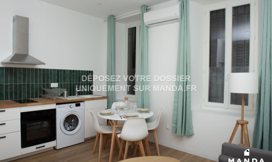 Logement Manda ! Visitez et déposez votre dossier uniquement sur notre plateforme ! Nous ne vous enverrons jamais le bail ou le RIB par mail - tout est sécurisé sur notre plateforme. Situé à Marseille, ce T1 meublé se trouve rue Sainte-Cécile. Non loin de l'arrêt de métro Baille, le logement est proche de toute commodité. L'appartement, lumineux, est composé d'une pièce principale où vous trouverez votre espace salon, un coin repas et un espace chambre. La cuisine est ouverte et équipée, et la salle de bain dispose d'une cabine de douche. Ce joli T1 en location n'attend plus que vous ! VOUS POUVEZ VISITER PLUS DE 3 000 LOGEMENTS (visite virtuelle + vidéos) ET DÉPOSER VOTRE CANDIDATURE SUR LE SITE WEB MANDA (REF : MANDA-33960) Référence du bien : MANDA-33960