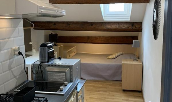 Loue studio, 3° étage dans immeuble bourgeois, Parquet chêne, poutres apparentes. 1 petite fenêtre et 1 Velux, Evier inox, réfrigérateur, plaque vitrocéramique, hotte aspirante, four multifonction, cafetière, TV écran plat. Clim. Wi Fi. accès Internet inclus Lit 140 (neuf), penderie, rangements. Salle de bain avec douche, WC sanibroyeur. Carrefour city (7h-21h), laverie à 300m. Bus (direct Luminy), métro à 300m. Docteur Bernard GLATZ (sur place). Boulevard Périer 13008 Marseille. Updated on 08/11/2025 Mise à jour le 08/11/2025