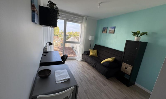 MERIGNAC, Centre-Ville, 680 Euro + charges 10 Euro Appartement T1 etat Neuf 21 m2. En residence avec ascenseur. Comprenant entree, salon, cuisine Amenagee equipee, salle d'eau, WC. Proche transports tramway et commerces Caution : 1 mois HC. Nous contacter LADP 05.56.04.04.04 fd 210 Euro - mis a jour le 04/11/25 - loyer hors charges