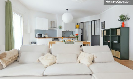 Profitez de cet élégant et confortable appartement de 78 m², idéalement placé pour découvrir les merveilles de Montpellier. Ce logement au premier étage peut accueillir jusqu'à 3 personnes et se compose de : - une pièce de vie spacieuse avec salon et salle à manger, - une cuisine ouverte bien équipée (machine à café, bouilloire, four micro-ondes, plaques de cuisson, lave-vaisselle, réfrigérateur), - deux chambres avec lit double (160 cm et 140 cm), - une salle de bain avec douche et WC, - bureau de travail, - aspirateur, lave-linge, sèche-cheveux, fer à repasser, - TV, satellite ou câble, wifi, livres, - air conditionné, ventilateur, radiateurs, cintres. Des frais de gestion d'un montant de 1014€ vous seront facturés. Ces frais comprennent l'état des lieux d'entrée et de sortie ainsi que les frais de ménage.