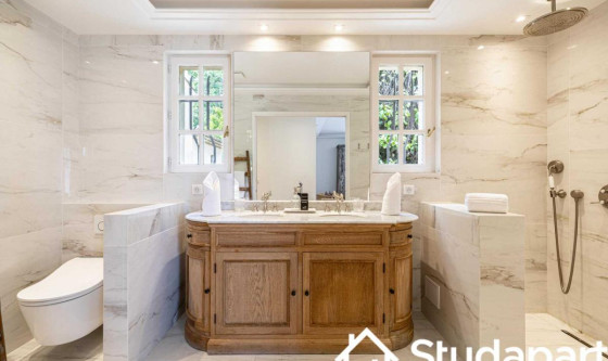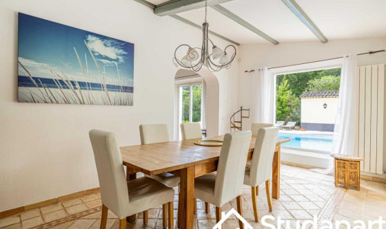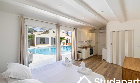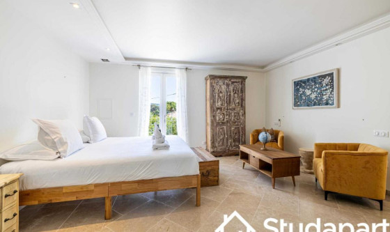 ## Space Bienvenue dans cette somptueuse villa de 258 m², située au sein d'une résidence privée et sécurisée. Élégante, lumineuse et pensée pour accueillir jusqu'à 12 personnes, elle offre un cadre d'exception où confort, intimité et sérénité se rencontrent. Les matériaux nobles, la décoration raffinée et les finitions haut de gamme créent une atmosphère chic et apaisante, idéale pour un séjour en famille ou entre amis. Vous profiterez d'un espace harmonieux, spacieux et parfaitement aménagé pour vivre une expérience inoubliable. Découvrez tout ce que cette villa a à vous offrir : Espace de vie Espaces communs : Un salon principal avec canapé confortable, télévision à écran plat et cheminée Un second salon équipé d'un coin bureau Une salle à manger avec grande table pour partager vos repas Une cuisine entièrement équipée : réfrigérateur, plaques de cuisson, four, micro-ondes, machine à café, bouilloire, lave-vaisselle et ustensiles essentiels Chambres : Six chambres, chacune avec un lit double confortable et une penderie Une chambre dispose d'un petit salon privatif Une autre chambre comprend un lit simple supplémentaire Une chambre bénéficie d'une kitchenette intégrée Salles d'eau : Trois salles d'eau avec douche moderne et WC Une salle d'eau supplémentaire avec douche, lavabo et WC Équipements pratiques : Lave-linge disponible Climatisation Télévisions et Wi-Fi haut débit Draps et serviettes fournis Les atouts de cette villa : Piscine avec salon de jardin Terrasse aménagée pour se détendre Internet haut débit inclus Climatisation pour un confort optimal Linge de lit et serviettes fournis (qualité hôtelière) Environnement calme et sécurisé Villa spacieuse avec finitions haut de gamme ## Access Vous aurez accès à l'ensemble de la maison, pour vous sentir comme chez vous. ## Interaction Nous sommes disponibles tous les jours de 9h à 23h, par téléphone, e-mail ou SMS. ## Neighborhood Située au cœur des collines verdoyantes de la Côte d'Azur, Mougins offre un cadre enchanteur mêlant charme médiéval, art contemporain et gastronomie raffinée. Entre ruelles pavées, maisons en pierre et remparts chargés d'histoire, le village dévoile une atmosphère authentique typiquement provençale. Ville d'art reconnue, Mougins abrite de nombreuses galeries, expositions à ciel ouvert et événements culturels tout au long de l'année, faisant d'elle une destination privilégiée pour les amateurs de culture et d'inspiration artistique. Entourée de paysages préservés et de vues sublimes sur la Méditerranée, la commune est idéale pour les balades, les découvertes locales et les moments de détente au grand air. Son héritage culinaire et ses tables réputées séduiront les épicuriens en quête d'expériences gustatives mémorables. Quelques adresses recommandées à proximité : Le Petit Fouet – Bistrot convivial à l'atmosphère authentique, idéal pour savourer une cuisine française généreuse Tranche de prix : €€ L'Amandier de Mougins – Institution culinaire installée dans une bâtisse provençale, proposant une cuisine méditerranéenne raffinée dans un cadre chargé de charme Tranche de prix : €€–€€€ La Place de Mougins – Adresse gastronomique incontournable où le chef Denis Fétisson sublime les produits de saison avec précision et créativité Tranche de prix : €€€ ## Transit En voiture : Notre adresse est facilement accessible via l'autoroute A8, également appelée "La Provençale". La sortie n°42 (Mougins / Cannes) vous permet de rejoindre rapidement le quartier des Caroubiers. Que vous veniez de Nice, Cannes ou Antibes, l'accès est direct et fluide. En transports en commun : Le secteur est desservi par plusieurs lignes de bus reliant Mougins aux villes voisines comme Cannes, Grasse ou Le Cannet. Il est recommandé de consulter les horaires et itinéraires sur les sites du réseau Palm Bus ou ZOU! Région Sud, pour planifier au mieux vos trajets. En train : La gare SNCF la plus proche est celle de Cannes, située à environ 15 minutes en voiture. Depuis la gare, vous pouvez prendre un taxi, un VTC ou un bus jusqu'à votre adresse à Mougins. En avion : L'aéroport Nice Côte d'Azur (NCE) se trouve à environ 25 minutes en voiture. Il offre de nombreuses connexions nationales et internationales. Pour rejoindre Mougins depuis l'aéroport, vous pouvez opter pour une location de voiture, un VTC ou une navette privée. ## Notes Nous vous demandons de nous fournir les pièces justificatives nécessaires : • 1 pièce d'identité • 1 justificatif du motif du séjour (professionnel ou scolaire) • 1 adresse électronique 1 contrat vous sera envoyé par email et un état des lieux sera effectué à votre arrivée et à votre départ. Nous souhaitons vous informer qu'à partir de 19h, un supplément sera demandé pour tout enregistrement (check-in) tardif. Nous vous prions de bien vouloir prendre cette information en considération lors de la planification de votre arrivée. Pour toute arrivée après cette heure, veuillez nous contacter à l'avance afin d'organiser votre enregistrement et d'éviter tout désagrément. Nous vous remercions pour votre compréhension et votre coopération. Arrivée en SEMAINE • Le Check-in : entre 15 h et 18 h Un agent prendra contact avec vous pour planifier votre arrivée, et échanger sur les modalités de récupération des clefs. Early check-in : entre 10 h et 15 h sous réserve de disponibilité. Late check-in : entre 19 h et 23 h, il vous faudra venir récupérer les clefs à notre bureau Arrivée le WEEKEND Le samedi ou le dimanche : entre 15 h et 23 h Les clés seront à récupérer dans nos locaux situés à proximité de l'Arc de Triomphe. Nous nous assurerons que votre arrivée se passe en toute tranquillité, et nous sommes à votre disposition pour répondre à toutes vos questions. Updated on 22/11/2025 Mise à jour le 22/11/2025