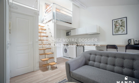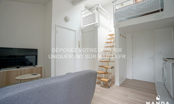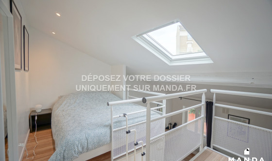 Logement Manda ! Visitez et déposez votre dossier uniquement sur notre plateforme ! Nous ne vous enverrons jamais le bail ou le RIB par mail - tout est sécurisé sur notre plateforme. À deux pas du centre-ville et proche du RER A Nanterre-Ville, Manda propose un T1 en location rue Sadi Carnot. Situé au 1er étage sans ascenseur, ce grand studio est loué meublé. L'entrée ouvre sur la pièce de vie et dispose de l'interphone. La pièce principale se compose de l'espace salon, d'un coin repas/bureau et de la cuisine ouverte et entièrement équipée. La fenêtre donne sur la rue. La chambre se trouve en duplex et se compose d'un lit double, de rangements et d'une ouverture type Velux. La salle de bain dispose d'une grande cabine de douche et de rangements sous vasque. Les WC sont séparés. Très belles prestations pour ce T1 en location : belle pièce de vie, lumineux, calme, rangements, bien agencé, meublé avec goût et simplicité. Idéal pour étudiant ou jeune actif, n'attendez plus pour déposer votre candidature ! VOUS POUVEZ VISITER PLUS DE 3 000 LOGEMENTS (visite virtuelle + vidéos) ET DÉPOSER VOTRE CANDIDATURE SUR LE SITE WEB MANDA (REF : MANDA-12211) Référence du bien : MANDA-12211