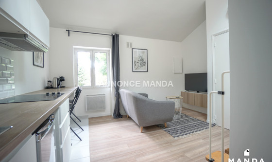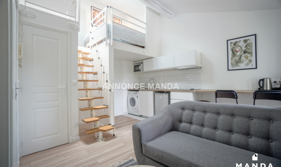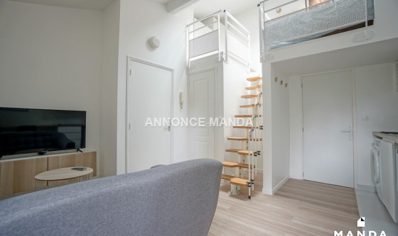 Logement Manda ! À deux pas du centre-ville et proche du RER A Nanterre-Ville, Manda propose un T1 en location rue Sadi Carnot. Situé au 1er étage sans ascenseur, ce grand studio est loué meublé. L'entrée ouvre sur la pièce de vie et dispose de l'interphone. La pièce principale se compose de l'espace salon, d'un coin repas/bureau et de la cuisine ouverte et entièrement équipée. La fenêtre donne sur la rue. La chambre se trouve en duplex et se compose d'un lit double, de rangements et d'une ouverture type Velux. La salle de bain dispose d'une grande cabine de douche et de rangements sous vasque. Les WC sont séparés. Très belles prestations pour ce T1 en location : belle pièce de vie, lumineux, calme, rangements, bien agencé, meublé avec goût et simplicité. Idéal pour étudiant ou jeune actif, n'attendez plus pour déposer votre candidature ! Référence du bien : MANDA-12211