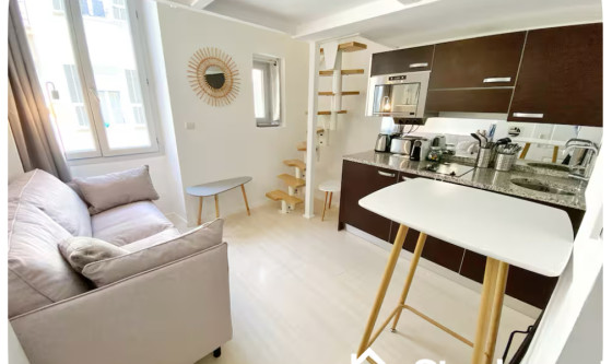 Appartement , idéalement situé, dans le quartier recherché du carrée d'or, proche mer, Tram et Massena . Salon avec grand hauteur sous plafond ,avec cuisine équipée, canapé lit et mezzanine. Toilettes séparées au RDC. Chambre à coucher sur mezzanine, lit double, sdb avec douche et lavabo. Updated on 12/11/2025 Mise à jour le 12/11/2025