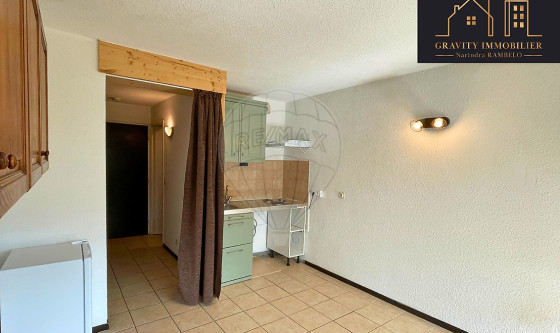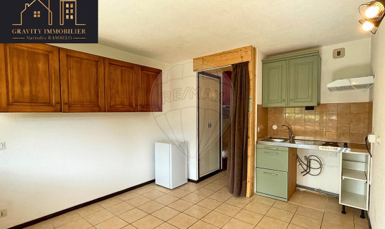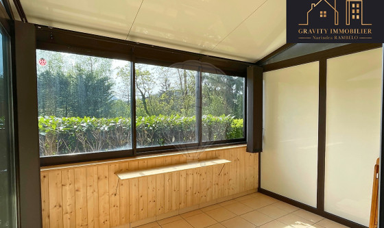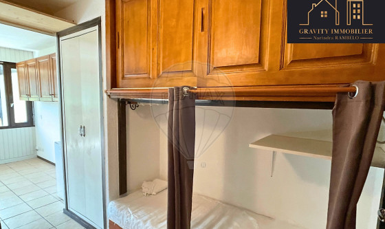 Une entrée avec un lit simple, une salle d'eau entièrement rénovée, un espace kitchenette, salon et une belle véranda complètent ce bien.