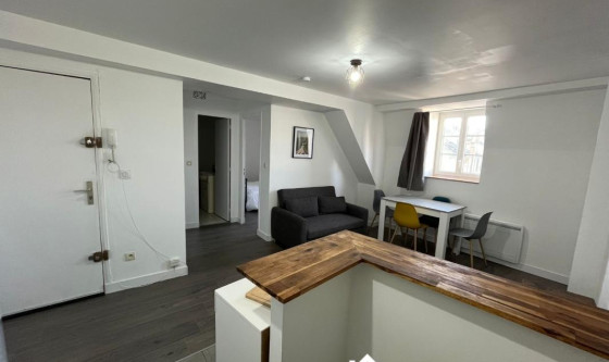 A louer Bel appartement meublé deux pièces refait à neuf, situé plein centre Orléans à deux pas de place d'arc. Deuxième étage d'une petite copropriété. A quelques mètres de la gare (fenêtres donnant sur la rue parallèle donc très calme), proche transports, commerces, commodités. Se compose d'une pièce à vivre avec une cuisine entièrement équipée (réfrigérateur, micro-ondes, four électrique avec plaques de cuisson..), machine à laver, une salle de bains (baignoire, lavabo, wc..), une chambre. L'appartement est loué complètement meublé avec tout le nécessaire (canapé, meuble TV, table, chaises, commode, vaisselle…). Interphone. Chauffage et chauffe-eau électrique. Fenêtres PVC. Loyer par mois (dont 30 euros de provision de charges). GARANT DEMANDE. Si l'annonce est encore en ligne, l'appartement est toujours disponible. Updated on 21/11/2025 Mise à jour le 21/11/2025