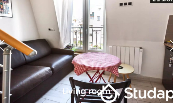 Ce logement est situé dans une petite rue demi-piétonne très calme et fleurie à côté d une école primaire et d un skate Park gratuit géré par la ville de Paris. Petit duplex de 22 m2 au total entièrement rénové avec matériaux de qualité. Il es situé au 3 eme etage d un immeuble ancien typique de Paris. Grande fenetre double vitrage avec vue dégagée La piece du bas avec canapé convertible neuf , table , cuisine américaine équipée, ustensiles de cuisine, vaisselle, lave linge, salle de douche privée exclusivement pour ce logement avec Wc , meuble lavabo et radiateur sèche serviette. A l etage il y a du parquet, chambre avec fenêtre de toit ,( faible hauteur sous plafond) , stores , grand lit , tv , meubles de rangement. Éligible APL. Convient pour 1 seul étudiant( e ). Internet wifi Haut Débit .Pas de colocation ( pour une personne seule ). Bail civil, durée déterminée Updated on 13/12/2025 Mise à jour le 13/12/2025