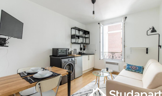 Visite virtuelle: https://tourmkr.com/F1lKpoS4xQ/32598442p&43.71h&97.4t Ce charmant studio meublé refait entièrement à neuf qui peut accueillir une personne, se situe Rue Des Trois Bornes au 4ème étage sans ascenseur dans un quartier animé et branché du 11ème arrondissement de Paris. Il est loué en bail MOBILITÉ pour une période de 1 à 7 mois et 29 jours maximum. Il est composé d'une pièce principale avec coin cuisine et d'une salle de bain privée avec douche, lavabo, sèche-serviette et WC. Il est très lumineux et calme donnant sur les toits. Très bien agencé, sa décoration minimaliste vous permettra de vous sentir chez vous. Il bénéficie de tout l'équipement nécessaire pour un séjour réussi (Internet tout compris, TV, Lave linge, Four, réfrigérateur, cafetière, bouilloire, vaisselle, ustensiles de cuisine, sèche-cheveux, couette, oreillers, matériel d'entretien ménager. . . ). C'est un appartement non-fumeur et les fêtes ne sont pas autorisées. L'immeuble est protégé par un digicode à l'entrée et d'un interphone pour accéder à l'appartement. Un local vélo est également disponible pour y laisser son vélo. Il est parfaitement desservi par les transports en commun (Parmentier/Ligne 3, Goncourt/Ligne 11, Couronnes/Ligne 2, Bus 96, 46 et 75). Il est à 10mn à pied du Marais et du Canal St Martin. Vous trouverez à proximité de nombreux commerces et services (Boulangerie, Boucherie, Epicerie, Kiosque à journaux, Laverie, Pharmacie, Restaurant, Bars, Supermarché. . . ). Le loyer inclut les charges forfaitaires de copropriété, l'eau froide et le WIFI. L'électricité reste à la charge du locataire selon sa consommation réelle d'après les relevés de compteur d'entrée et de sortie. Updated on 21/11/2025 Mise à jour le 21/11/2025