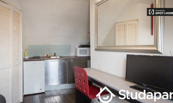 Paris 17e . Place de l'Étoile Charles De Gaulle Arc de Triomphe. Immeuble pierre de taille, grand standing, au 6e et dernier étage, ascenseur. Studio meublé , traversant, tout confort, très belle vue sur Arc de Triomphe, tour Eiffel. Calme, claire, ensoleillé, lumineux, grande fenêtre, double vitrage. Cuisinette équipée, salle d'eau séparée (douche, wc, lavabo), accès internet-wifi possible. Idéal étudiant(e), stagiaire. Possibilité courte durée (sous conditions), séjour linguistique, séjour affaires et touristiques. Photos et disponibilité sur demande Updated on 18/11/2025 Mise à jour le 18/11/2025