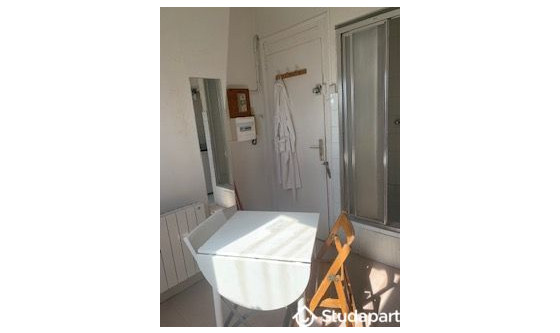 au 6 me étage, avec ASCENSEUR jusqu'à au 6 me, dans un immeuble bourgeois, dans le quartier de l 'Etoile, une studette toute equipée.douche à l interieur, privative,micro onde, 2 plaques elecriques,frigo table , 2 chaises., cafetiere .bouilloire.,vaisselle et linge de lit et serviettes fournis.excellent etat, ideal pour un etudiant(e).Eligible aux APL.Le quartier est tres bien desservi, metro ETOILE ou TERNES , AUTOBUS : RER .Beaucoup de commerces de bouche à dispostion. quartier calme tres securisé. LES TOILETTES SONT SUR LE PALIER. Updated on 05/10/2025 Mise à jour le 05/10/2025