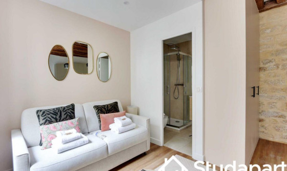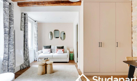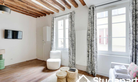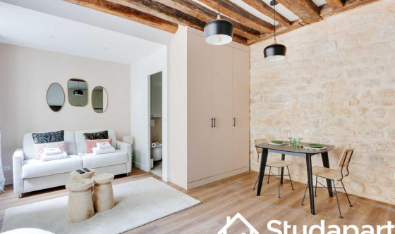 ## Space Eligible au bail mobilité. Notre bien de 23 m² est idéalement situé dans le Haut Marais, enclave emblématique de Paris, imprégnée d'histoire, de diversité et de vie parisienne. La proximité du studio avec des sites emblématiques tels que le Centre Pompidou, le Musée des Arts et Métiers et la Place des Vosges vous permettra d'explorer le riche patrimoine culturel propre au quartier. Côté gastronomie, les options sont infinies. Des bistros traditionnels aux restaurants étoilés en passant par les bars à vin et les cafés cosy, le quartier est un véritable paradis pour les gourmets en quête de nouvelles saveurs et d'expériences culinaires uniques. Notre studio pouvant accueillir deux personnes incarne l'essence même du style parisien et vous offrira une expérience voyageur confortable avec du mobilier de qualité. L'espace est parfaitement optimisé créant une ambiance chaleureuse, conviviale et harmonieuse. L'intérieur, minimaliste avec des notes claires, est une fusion parfaite entre le charme ancien (poutres apparentes, murs en pierre) et les commodités modernes. La décoration est raffinée où l'harmonie des tons rencontre de jolis matériaux. Du fait de sa situation géographique centrale dans le quartier du Marais vous pourrez vous rendre à pied Place de La République, arpenter tous le quartier du Marais, vous promener le long du Canal Saint-Martin. Notre studio se trouvant à 5 minutes à pied du métro République, il sera un point de départ idéal pour explorer les 4 coins de Paris : La Tour Eiffel, les Champs-Elysées, Montmartre et la Basilique du Sacré-Cœur, le Musée du Louvre, L'ile de la Cité et Notre Dame de Paris, la Rive Gauche, Notre studio est situé au premier étage sans ascenseur sur cour, vous promettant calme et sérénité. Il se compose : - D'une cuisine ouverte fonctionnelle et équipée : réfrigérateur, plaques de cuisson, bouilloire, machine à café, grille-pain, four. Un lave-linge est disponible dans le studio. - La pièce à vivre jouit d'une belle luminosité grâce à ses grandes fenêtres et se compose : d'un canapé-lit double, assises modernes, une table à manger et une télévision. - Une salle d'eau avec douche, lavabo, sèche serviette et WC. - Des rangements optimisés pour organiser vos effets personnels - Télévision et Internet haut débit (WIFI) - Les draps et les serviettes de toilettes sont soigneusement fournis par nos soins. ## Access Vous aurez accès à l'ensemble du studio, pour vous sentir comme chez vous. ## Interaction Plongez dans l'exclusivité de cet espace unique ! Pour toute question, nous sommes à votre disposition par téléphone ou SMS de 9h à 23h. Votre satisfaction est notre priorité, et nous sommes là pour rendre votre expérience exceptionnelle. ## Neighborhood Le 3eme arrondissement, que certains appellent aussi (à tort…) le « Haut Marais », est un quartier vivant, devenu à la mode et branché au cours des dernières années. Apprécié par ses galeries d'art, le IIIe arrondissement possède également de nombreuses pépites en terme d'édifices. Les Archives Nationales, le Conservatoire national des arts et métiers (CNAM), le Musée Picasso et le Carreau du Temple se trouvent au cœur de ce quartier aussi vivant que reposant. C'est un arrondissement aux multiples visages, très apprécié pour sa qualité de vie. Voici nos recommandations de restaurants à proximité du studio : - Brasserie Dubillot - La Massara - Le Barav - Bouillon République ## Transit La situation géographique du studio vous permettra de vous déplacer très facilement et rapidement dans l'ensemble de la capitale via ces nombreuses possibilités de transports en commun : - Métro République : Ligne 3/5/8/9/11 situé à 5 minutes à pied du studio. - Nombreuses lignes de Bus jour & nuit - Plusieurs compagnies de Taxi disponibles : Les taxis G7 (la plus utilisée) : appelez le 36 07 - Station Vélib ## Notes Nous vous demandons de nous fournir les pièces justificatives nécessaires : - 1 pièce d'identité - 1 justificatif du motif du séjour (professionnel ou scolaire) - 1 adresse électronique 1 contrat vous sera envoyé par email et un état des lieux sera effectué à votre arrivée et à votre départ. --- Arrivée en SEMAINE - Le Check-in : entre 15h et 18h Un agent prendra contact avec vous pour planifier votre arrivée, et échanger sur la modalité de récupération des clefs. Early check-in : entre 10h et 15h sous réserve de disponibilité. Late check-in : entre 19h et 23h, il vous faudra venir récupérer les clef à notre bureau Arrivée le WEEKEND Le samedi ou le dimanche : entre 15h et 23h Les clés seront à récupérer dans nos locaux situés à proximité de l'Arc de Triomphe. Nous nous assurerons que votre arrivée se passe en toute tranquillité, et nous sommes à votre disposition pour répondre à toutes vos questions. Updated on 20/11/2025 Mise à jour le 20/11/2025