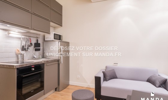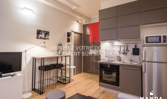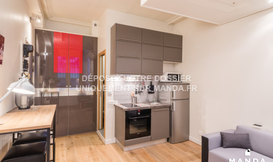 Logement Manda ! Visitez et déposez votre dossier uniquement sur notre plateforme ! Nous ne vous enverrons jamais le bail ou le RIB par mail - tout est sécurisé sur notre plateforme. A 2 minutes du métro Château Rouge et à côté du quartier Village Ramey, Manda propose un T1 en location rue Custine. Situé au rez-de-chaussée, ce studio parfaitement optimisé est loué meublé. L'entrée dispose d'un large placard avec penderie et étagères. La pièce principale propose un coin salon, composé d'un canapé deux places, de trois tables basses, d'un fauteuil, d'un pouf, d'un meuble TV surmonté de son écran plat et d'une fenêtre donnant sur la cour intérieure de l'immeuble. Le coin déjeuner (ou bureau) propose une table et deux chaises hautes. La cuisine, ouverte sur le séjour, est équipée de plaques de cuisson, d'une hotte, d'un four, d'un réfrigérateur avec congélateur, d'un micro-ondes, d'un évier simple bac et de nombreux placards de rangement avec de la vaisselle. Le coin nuit se trouve dans la pièce principale : le lit deux places est sur rails et descend du plafond afin de transformer le coin salon en chambre à coucher. La salle de bain dispose d'une belle vasque carrée, d'un miroir, d'une cabine de douche carrelée et du lave-linge. Les WC sont dans la salle de bain. Prestations de grande qualité pour ce T1 en location : très bien agencé, tranquillité grâce à l'exposition sur cour, optimisation maximale de l'espace, belle hauteur sous plafond... Le métro Château Roule ligne 4 est à 2 minutes à pied, le quartier de la Goutte d'Or est à moins de 500m et tous les commerces et restaurants sont à proximité immédiate. Idéal pour une personne seule ou un jeune couple, n'attendez plus et déposez votre candidature ! Pour rappel, cet appartement est situé dans une zone soumise à encadrement des loyers. Loyer de base : 528,7€ Loyer de référence majoré (Loyer de base à ne pas dépasser) : 634,1€ Complément de loyer : 263,17€ VOUS POUVEZ VISITER PLUS DE 3 000 LOGEMENTS (visite virtuelle + vidéos) ET DÉPOSER VOTRE CANDIDATURE SUR LE SITE WEB MANDA (REF : MANDA-08368) Référence du bien : MANDA-08368