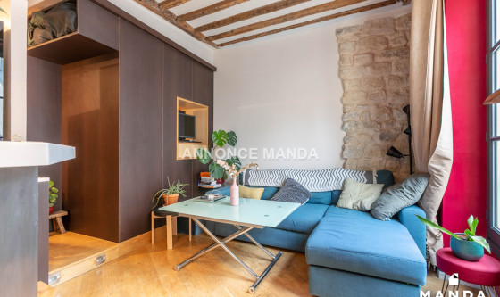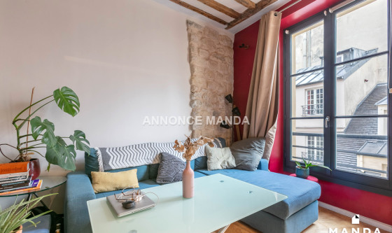 Logement Manda ! Manda vous propose ce T1 meublé de 27 m², situé Rue Pecquay au cœur du 4ᵉ arrondissement de Paris, dans le quartier très recherché du Marais. Ce bel appartement se compose d'un salon avec canapé convertible, table basse, placards et TV, d'une cuisine ouverte entièrement équipée (plaques, hotte, four micro-ondes, réfrigérateur, lave-linge, lave-vaisselle), d'une chambre avec lit double, rangements et TV, ainsi que d'une salle de bain avec douche et WC séparés. Idéalement situé à deux pas du Centre Pompidou, de l'Hôtel de Ville et du métro Rambuteau, ce T1 charmant et pratique vous offre un cadre de vie unique en plein centre de Paris. Pour rappel, cet appartement est situé dans une zone soumise à encadrement des loyers. Loyer de base : 1085,2€ Loyer de référence majoré (Loyer de base à ne pas dépasser) : 1302,24€ Complément de loyer : 0€ Référence du bien : MANDA-68205