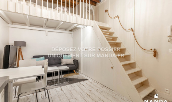 Logement Manda ! Visitez et déposez votre dossier uniquement sur notre plateforme ! Nous ne vous enverrons jamais le bail ou le RIB par mail - tout est sécurisé sur notre plateforme. L'agence Manda vous propose ce joli studio meublé, situé à Paris, dans le Marais. Cet appartement est composé du séjour avec canapé et écran plat, de la cuisine ouverte équipée, d'une mezzanine avec lit double et de la salle d'eau avec douche. Idéalement situé dans un quartier résidentiel paisible et bien desservi, le logement est à proximité des commerces, des écoles et des transports en commun. Disponible immédiatement, ce joli studio en location n'attend que vous ! Pour rappel, cet appartement est situé dans une zone soumise à encadrement des loyers. Loyer de base : 664,64€ Loyer de référence majoré (Loyer de base à ne pas dépasser) : 798,26€ Complément de loyer : 0€ VOUS POUVEZ VISITER PLUS DE 3 000 LOGEMENTS (visite virtuelle + vidéos) ET DÉPOSER VOTRE CANDIDATURE SUR LE SITE WEB MANDA (REF : MANDA-68943) Référence du bien : MANDA-68943