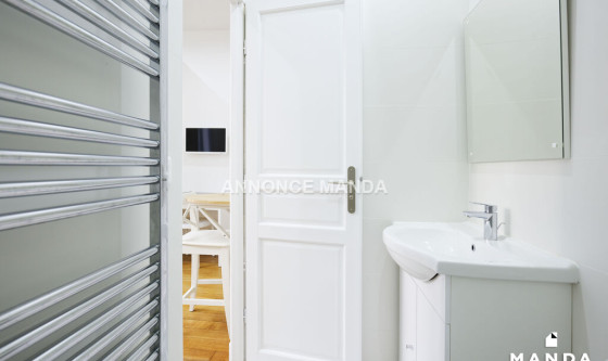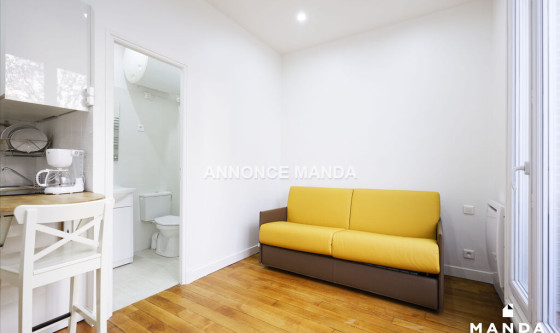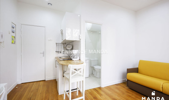 Logement Manda ! Location pour étudiants seulement. Appartement récemment refait à neuf. Au sein d'une résidence de 13 appartements, ce studio est conçu pour le confort de la vie étudiante. Disposé au 1er étage d'une maison intégralement rénovée fin 2017, ce studio intégralement équipé est constitué des pièces suivantes : • Une entrée dans laquelle se trouve une cuisine intégralement équipée avec micro-ondes, plaques vitro-céramique, machine à café et couverts • Une salle de bain équipée avec toilettes, douche et meuble vasque • Une chambre constituée d'un canapé-lit avec mécanisme lampolet et matelas 14 cm Proche du parc des buttes-chaumont, véritable poumon de la capital, vous disposez à proximité du logement de tous les services annexes (commerces, laverie) et des transports (métro à 20 mètres). Pour rappel, cet appartement est situé dans une zone soumise à encadrement des loyers. Loyer de base : 486,4€ Loyer de référence majoré (Loyer de base à ne pas dépasser) : 584,0€ Complément de loyer : 106,0€ Référence du bien : MANDA-00366