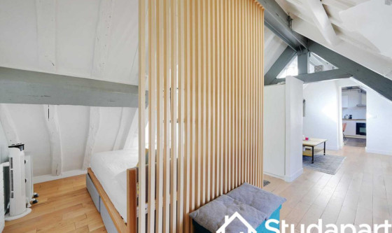 ## Space Découvrez ce charmant studio mansardé de 40 m² au 4ᵉ étage sans ascenseur, situé dans le vibrant quartier du Marais à Paris. Parfait pour 4 personnes, il combine confort moderne et ambiance parisienne. Idéalement situé à quelques minutes à pied de la rue Rivoli, des boutiques, cafés et restaurants du Marais; vous pourrez également rejoindre facilement les sites emblématiques de la capitale. Une adresse parfaite pour profiter pleinement de la ville et de ses trésors. Idéalement situé et proche des transports en commun, vous pourrez vous déplacer facilement et rapidement dans tout Paris et découvrir ses différents sites touristiques comme la Tour Eiffel, les Champs-Élysées, l'Arc de Triomphe et le Panthéon. Un logement parfait pour explorer Paris en toute sérénité ! L'appartement se compose de : Salon avec canapé-lit, TV, table d'appoint et un coin nuit avec lit double et placard Cuisine séparée entièrement équipée : bouilloire, toaster, machine à café, micro-ondes, plaque de cuisson, hotte, four, évier, lave-vaisselle, réfrigérateur, congélateur et un coin repas avec table à manger Salle d'eau avec douche, lavabo, lave-linge et WC Eligible au Bail Mobilité Les atouts de cet appartement : Connexion Internet haut débit (Wi-Fi) incluse Les draps et les serviettes de bain sont fournis Quartier central et vivant, proche des commerces et transports facilitant l'accès à tout Paris À quelques minutes à pied des sites emblématiques du Marais ## Access Vous aurez accès à l'ensemble de l'appartement, pour vous sentir comme chez vous. ## Interaction Plongez dans l'exclusivité de cet espace unique ! Pour toute question, nous sommes à votre disposition par téléphone ou SMS de 9h à 23h. Votre satisfaction est notre priorité, et nous sommes là pour rendre votre expérience exceptionnelle. ## Neighborhood Le Marais est un quartier emblématique de Paris, mêlant culture, gastronomie, boutiques et vie de rue. Des ruelles calmes aux places animées, vous trouverez cafés, bistrots et bars à vin à proximité immédiate, et le musée Carnavalet ou la Place des Vosges sont accessibles en quelques minutes à pied. Quelques recommandations locales : Le Colimaçon – Cuisine française traditionnelle revisitée, ambiance chaleureuse et cosy Tranche : €€ PNY Marais Bretonnerie – Burgers gourmets dans un décor moderne et élégant Tranche : €€ Lehaïm Paris – Street food méditerranéenne, cadre décontracté et moderne Tranche : € ## Transit Le logement bénéficie d'un excellent accès aux transports en commun, facilitant vos déplacements dans tout Paris : Métro : Ligne 1 – Saint-Paul, 5 min à pied Métro : Ligne 8 – Filles du Calvaire, 7 min à pied Plusieurs lignes de bus passent à proximité Stations Vélib' à proximité pour découvrir Paris à vélo Taxis disponibles à proximité (notamment G7) ## Notes Nous vous demandons de nous fournir les pièces justificatives nécessaires : • 1 pièce d'identité • 1 justificatif du motif du séjour (professionnel ou scolaire) • 1 adresse électronique Un contrat vous sera envoyé par email et un état des lieux sera effectué à votre arrivée et à votre départ. Arrivée en SEMAINE • Check-in : entre 15 h et 18 h Un agent prendra contact avec vous pour planifier votre arrivée et expliquer les modalités de récupération des clés. Early check-in : entre 10 h et 15 h sous réserve de disponibilité Late check-in : entre 19 h et 23 h, il vous faudra venir récupérer les clés à notre bureau Arrivée le WEEKEND Le samedi ou le dimanche : entre 15 h et 23 h Les clés seront à récupérer dans nos locaux situés à proximité de l'Arc de Triomphe. Nous nous assurerons que votre arrivée se passe en toute tranquillité et nous restons à votre disposition pour répondre à toutes vos questions. Updated on 18/11/2025 Mise à jour le 18/11/2025