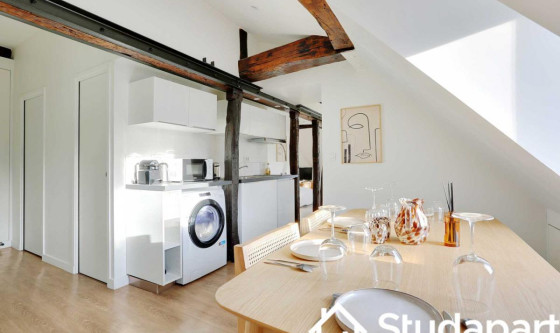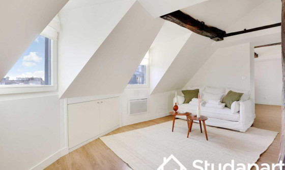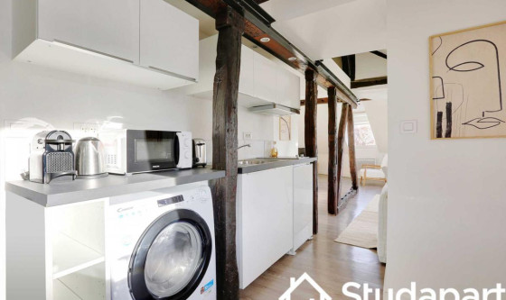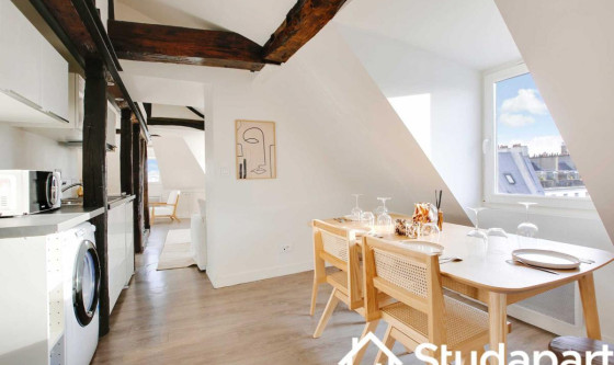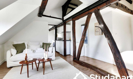## Space Cet appartement deux pièces de 40m² situé au 6eme étage sans ascenseur est situé aux abord des Jardins des Archives Nationales à seulement 8 minutes à pied de l'Hôtel de ville ! Cette rue est animée et offre une variété d'activités, de commerces, de restaurants et de sites intéressants. Il se compose de : - une cuisine ouverte équipée et fonctionnelle : frigidaire, plaques de cuisson, machine à café, grille-pain, bouilloire, micro-ondes, lave linge. - La cuisine est ouverte sur un espace doté d'une table pour se restaurer et/ou travailler. - l'espace à vivre, avec ses poutres apparentes, est muni d'un canapé lit double et d'une télévision. Vue direct sur sur les Jardins des Archives Nationales ! - une chambre équipée d'un lit double, d'une télévision et d'une penderie. - une salle d'eau avec douche et WC - TV et Internet haut débit - draps et serviettes de toilettes fournis Ce logement est disponible pour un bail mobilité UNIQUEMENT. Le bail mobilité est un type de bail de location meublée de courte durée. Il vise à faciliter la mobilité des locataires, et notamment ceux amenés à déménager pour des raisons professionnelles (mutation ou mission), les étudiants, les jeunes en formation, en alternance ou en stage. ## Access Vous aurez accès à l'ensemble de l'appartement, pour vous sentir comme chez vous. ## Interaction Nous sommes disponibles à tout moment, par téléphone, email ou SMS. ## Neighborhood Apprécié pour ses galeries d'art, le IIIe arrondissement possède également de nombreuses pépites en terme d'édifices. En effet, les Archives Nationales, le Conservatoire national des arts et métiers (CNAM), le Musée Picasso et le Carreau du Temple se trouvent au cœur de ce quartier aussi dynamique que reposant. L'arrondissement est fréquentée tant par les Parisiens que par les visiteurs du monde entier qui explorent le Marais. Vous découvrirez des cafés charmants, des pâtisseries, des boutiques de mode tendance, des galeries d'art contemporain, et des échoppes proposant des produits artisanaux. La proximité de la Seine offre également la possibilité de flâner le long des quais, profitant ainsi de vues panoramiques sur la cathédrale Notre-Dame et d'autres monuments emblématiques de Paris. ## Transit La situation ultra centrale de l'appartement vous permettra de vous déplacer très facilement et rapidement dans l'ensemble de la capitale via ces nombreuses possibilités de transports en commun : - Métro : Rambuteau (ligne 11), situé à 4 minutes à pied - Métro : Hôtel de ville (ligne 1 & 11), situé à 8 minutes à pied - Métro : Châtelet Les Halles (RER A, B, D et ligne 1,4,7,11,14), situé à 10 minutes à pied. - Nombreuses lignes de BUS jour & nuit - Station Vélib - Plusieurs compagnies de Taxi disponibles : Les taxis G7 (la plus utilisée) : appelez le 36 07. Des places de moto devant la résidence et de voiture. (Paiement 9h-19h) ## Notes Nous vous demandons de nous fournir les pièces justificatives nécessaires : - 1 pièce d'identité - 1 justificatif du motif du séjour (professionnel ou scolaire) - 1 adresse électronique 1 contrat vous sera envoyé par email et un état des lieux sera effectué à votre arrivée et à votre départ. --- POUR LES CHECK-IN Arrivée en SEMAINE - Le Check-in : entre 15h et 18h Un agent prendra contact avec vous pour planifier votre arrivée, et échanger sur la modalité de récupération des clefs. Early check-in : entre 10h et 15h sous réserve de disponibilité. Late check-in : entre 19h et 23h, il vous faudra venir récupérer les clef à notre bureau Arrivée le WEEKEND Le samedi ou le dimanche : entre 15h et 23h Les clés seront à récupérer dans nos locaux situés à proximité de l'Arc de Triomphe. Nous nous assurerons que votre arrivée se passe en toute tranquillité, et nous sommes à votre disposition pour répondre à toutes vos questions. Updated on 18/11/2025 Mise à jour le 18/11/2025