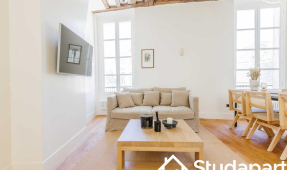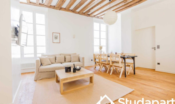 ## Space Ce logement est disponible pour un bail mobilité UNIQUEMENT. Le bail mobilité est un type de bail de location meublée de courte durée. Il vise à faciliter la mobilité des locataires, et notamment ceux amenés à déménager pour des raisons professionnelles (mutation ou mission), les étudiants, les jeunes en formation, en alternance ou en stage. Situé au coeur de Paris, l'appartement se trouve au coeur du Marais, juste en face des Archives Nationales ! Idéalement situé, vous pourrez rapidement rejoindre les différents sites touristiques de la ville. Il s'agit d'un appartement de 72m² situé au 2eme étage sans ascenseur. Il se compose de: - Une cuisine ouverte, équipée et fonctionnelle : frigidaire, plaques de cuisson, machine à café, grille-pain, bouilloire, micro-ondes, lave-vaisselle, four, lave linge ... - Un salon avec un canapé, une table à manger et TV - Deux chambres parentales avec lit double et salle d'eau avec douche et WC dans chacune. - De nombreux rangements - TV et Internet haut débit - Draps et serviettes de toilettes fournis ## Access Vous aurez accès à l'ensemble de l'appartement, pour vous sentir comme chez vous. ## Interaction Nous sommes disponibles à tout moment, par téléphone, email ou SMS. ## Neighborhood Le 3eme arrondissement, que certains appellent aussi (à tort…) le « Haut Marais », est un quartier vivant, devenu à la mode et branché au cours des dernières années. Apprécié par ses galeries d'art, le IIIe arrondissement possède également de nombreuses pépites en terme d'édifices. Les Archives Nationales, le Conservatoire national des arts et métiers (CNAM), le Musée Picasso et le Carreau du Temple se trouvent au cœur de ce quartier aussi vivant que reposant. C'est un arrondissement aux multiples visages, très apprécié pour sa qualité de vie. ## Transit La situation géographique de l'appartement vous permettra de vous déplacer très facilement et rapidement dans l'ensemble de la capitale via ces nombreuses possibilités de transports en commun : - Métro: Saint-Paul (ligne 1), situé à 10 minutes à pied - Métro: Filles du Calvaire (ligne 8), situé à 9 minutes à pied - Nombreuses lignes de BUS jour & nuit - Station Vélib - Plusieurs compagnies de Taxi disponibles : Les taxis G7 (la plus utilisée) : appelez le 36 07. Des places de moto devant la résidence et de voiture. (Paiement 9h-19h) ## Notes Nous vous demandons de nous fournir les pièces justificatives nécessaires : - 1 pièce d'identité - 1 justificatif du motif du séjour (professionnel ou scolaire) - 1 adresse électronique 1 contrat vous sera envoyé par email et un état des lieux sera effectué à votre arrivée et à votre départ. --- "POUR LES CHECK-IN EN SEMAINE Horaire d'arrivée : entre 15h et 18h Early check-in (sous réserve de possibilité) Late check-in (sous réserve de possibilité) : entre 19h et 23h : 30 euros (sujet à disponiblité d'un agent) EN WEEK-END Entre 19h et 23h : 50 euros (sujet à disponiblité d'un agent) * Tout paiement pour les check-ins devra se faire en espèce directement à la personne faisant le check-in. A défaut de paiement, la personne ne sera pas en mesure de vous remettre les clefs" Updated on 18/11/2025 Mise à jour le 18/11/2025
