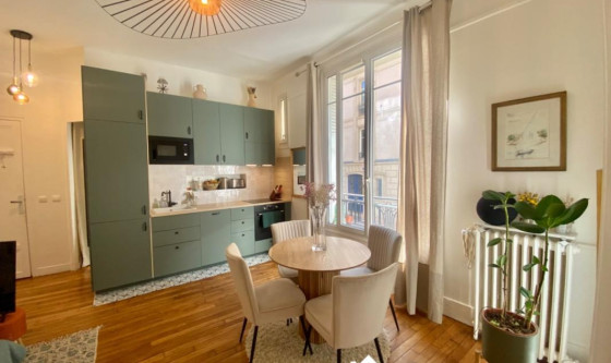 Appartement lumineux situé au premier étage, avec un accès par le rez de chaussée. Salle de bain et cuisine neuves. Proches des lignes de métro 2 (Blanche), 12 (Abbesses, Lamarck Caulaincourt) et 13 (Place de Clichy). Grande hauteur sous plafond. Lit King size, bien équipé. Updated on 19/11/2025 Mise à jour le 19/11/2025