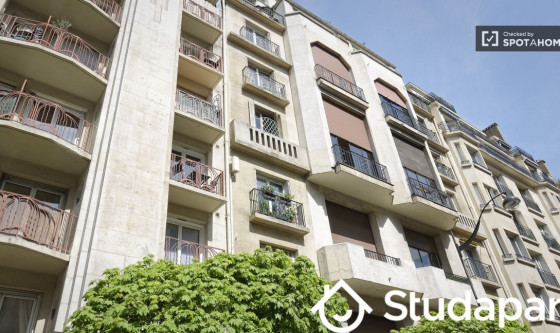 Quartier Porte Maillot, Ouest parisien. Situé à proximité immédiate de métros (ligne 1 et 3), RER (A et C) et bus (terminus de bus à 6 minutes à pied) , de commerces et de lieux touristiques. Dans un quartier calme et très sécurisé, quartier branché du 17ème arrondissement. Appartement au 6ème étage (ascenseur) donnant sur jardin privatif immeuble, très lumineux et extrêmement calme, intégralement meublé (lit, table, chaises, vaisselles) et équipé (machine à laver le linge, appareils électro-ménager, aspirateur, Nespresso...). Salle de bain et toilettes séparés. Grande pièce à vivre avec balcon. Parquet au sol, carrelage dans la salle de bain. Idéal pour étudiant ou pied à terre. Updated on 22/11/2025 Mise à jour le 22/11/2025