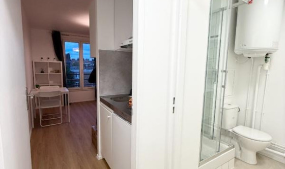 Studio meublé entièrement refait à neuf situé au pied de la station de tramway Marie de Miribel (Paris 20eme), et à 7-8 minutes à pied de la station de métro Porte de Bagnolet (L3) et de la station Porte de Montreuil (L9). Ce studio de 19m2 est situé au 7ème et dernier étage avec ascenseur d'une résidence de 1999 et se compose d'une entrée spacieuse, d'une salle de bain avec cabine de douche, wc, lavabo, sèche serviette électrique et lave linge, d'une cuisine équipée avec plaques de cuisson, hotte, frigo avec compartiment congélateur, rangements, vaisselle (poêles, casseroles, verres, assiettes, bols, ustensiles de cuisine…), et d'une pièce principale avec lit 90x200, grand dressing, bibliothèque, ainsi que d'une table avec 2 chaises. Grandes fenêtres avec vue dégagée sans vis à vis. Entrée sécurisée avec Vigik et gardien présent sur place. Loyer : 950€/mois charges comprises (inclus 100€ de charges) Dépôt de garantie de 2 mois demandé (1700€) Merci d'avance de m'envoyer votre dossier complet (type dossier facile) avant la prise de rendez-vous. Garanties solides ou Visale demandée. Updated on 05/12/2025 Mise à jour le 05/12/2025