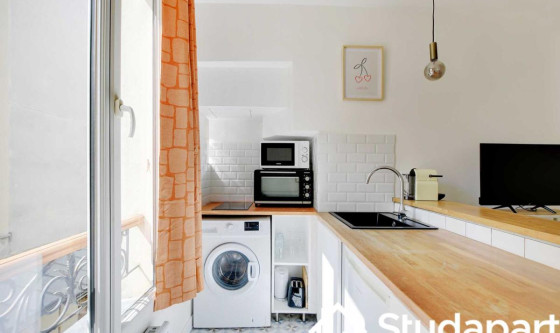 ## Space Bienvenue dans ce charmant appartement de 23m², situé au 1ᵉr étage d'un immeuble parisien typique, accessible par escalier. Niché dans la rue Sainte-Marthe, dans le 10e arrondissement de Paris, cet espace est conçu pour offrir confort, modernité et sérénité à ses visiteurs. Dès votre arrivée, vous serez séduit par le style moderne de cet appartement, sublimé par des tons chauds qui créent une atmosphère chaleureuse et accueillante. Cet emplacement vous permet d'explorer Paris en utilisant les transports en commun facilement accessibles et découvrir les différents sites emblématiques de la ville: le Sacré Coeur, La Tour-Eiffel, Jardin des Tuileries, Palais Garnier, Les Champs-Élysées... Le logement se compose de : Un superbe séjour avec un magnifique canapé, une TV et une table d'appoint. Une cuisine ouverte, fonctionnelle et équipée d'un réfrigérateur, plaques de cuisson, grille pain, machine à café, Bouilloire, un micro-ondes, four, lave-linge... Une chambre avec un lit Queen Size et une penderie. Une salle d'eau dotée d'une douche, d'un lavabo et d'un WC. Les atouts de cet appartement : Connexion Internet haut débit (WiFi) incluse Draps et serviettes de toilette fournis pour un séjour sans souci. Éligible au Bail Mobilité. ## Access Vous aurez accès à l'ensemble du logement ## Interaction Nous restons entièrement disponible de 09:00 à minuit par sms, appel ou email. ## Neighborhood Impossible d'évoquer le 10e arrondissement de Paris sans parler du Canal Saint-Martin, devenu l'un des endroits les plus à la mode de la capitale. Construit au début du 19e siècle, il offre un plan d'eau agréable, moins touristique et plus intime que les bords de Seine. Le 10e arrondissement est également le quartier des 2 gares (gare de l'Est et Gare du Nord qui amène à Londres en quelques heures.), d'où son effervescence perpétuelle et son ambiance populaire. Enfin, le quartier du Château d'eau, autour de la rue du faubourg Saint-Denis, est idéal pour les fêtards. Voici quelques recommandations des meilleurs restaurants à proximité de l'appartement : Le Robinet d'Or Restaurant & Bar Canal Saint Martin : véritable symphonie de saveurs, Le restaurant vous offre une expérience gustative exceptionnelle. Tranche de Prix: €€ Amore Mio : Restaurant de style décontracté à l'ambiance rustique chic proposant des plats italiens traditionnels. Tranche de Prix: €€ ## Transit La situation géographique de l'appartement vous permettra de vous déplacer très facilement dans la capitale via ces nombreuses possibilités de transports en commun : Métro: Belleville (ligne,2,11), situé à 7 minutes à pied BUS : Hôpital Saint-Louis (ligne 46,75 ), situé à 2 minutes à pied BUS (jour et nuit) Stations Vélib Taxis disponibles facilement dans le quartier, notamment via Taxis G7 (36 07) ## Notes Nous vous demandons de nous fournir les pièces justificatives nécessaires : - 1 pièce d'identité - 1 justificatif du motif du séjour (professionnel ou scolaire) - 1 adresse électronique 1 contrat vous sera envoyé par email et un état des lieux sera effectué à votre arrivée et à votre départ. --- POUR LES CHECK-IN Arrivée en SEMAINE - Le Check-in : entre 15h et 18h Un agent prendra contact avec vous pour planifier votre arrivée, et échanger sur la modalité de récupération des clefs. Early check-in : entre 10h et 15h sous réserve de disponibilité. Late check-in : entre 19h et 23h, il vous faudra venir récupérer les clef à notre bureau Arrivée le WEEKEND Le samedi ou le dimanche : entre 15h et 23h Les clés seront à récupérer dans nos locaux situés à proximité de l'Arc de Triomphe. Nous nous assurerons que votre arrivée se passe en toute tranquillité, et nous sommes à votre disposition pour répondre à toutes vos questions. Updated on 11/12/2025 Mise à jour le 11/12/2025