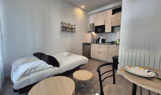 Nous vous proposons à la location ce studio de 19m2 situé Avenue Jean Jaurès. Description : - Surface : 19m2 - Pièce principale : cuisine équipée, lit, table à manger, table basse, rangements dans l'entrée. - Cuisine équipée : réfrigérateur, plaque de cuisson, micro-ondes, bouilloire, machine à café, ustensiles de cuisine, rangements. - Salle d'eau : douche, lavabo, WC et rangements Disponible à partir du 21 novembre. Emplacement : - 3min à pied de l'arrêt de bus "Chalet" Frais d'agence : 130% N'hésitez pas à nous contacter pour plus d'informations ou organiser une visite ! L'équipe Nalis. Updated on 18/11/2025 Mise à jour le 18/11/2025