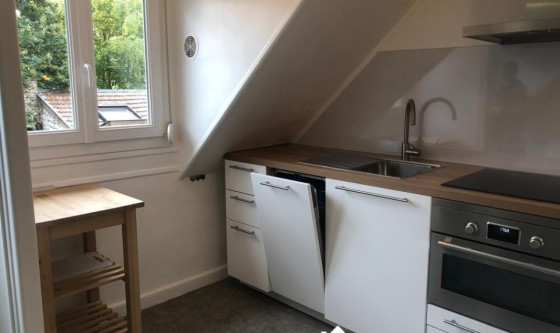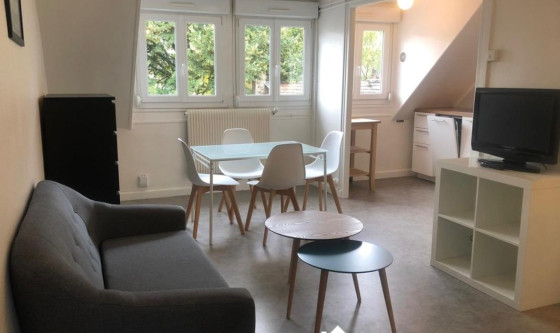 Appartement 2 pièces meublé de 42 m2, situé au 2ème étage d'un immeuble ancien de 3 logements. En hypercentre ville de Reims, à 2 minutes à pied de la place d'Erlon, de ses restaurants et d'un commerce alimentaire Intermarché, à moins de 5 minutes à pied d'autres commerces essentiels (Fnac, Monoprix...), du cinéma, de salles de sport, et des stations de tramway « Vesle » et bus (BHNS) « Opéra-Cathédrale » et « Etape » menants aux campus des universités et grandes écoles (Neoma, Sciences Po…), et à moins de 10 minutes à pied de la gare Centre. L'appartement est composé de : - 1 entrée ; - 1 pièce principale salon / salle à manger comprenant entre autre un canapé, une table, des chaises, et plusieurs meubles de rangements, avec une vue dégagée sur un petit jardin public ; - 1 cuisine récente ouverte sur la pièce principale, équipée d'une table de cuisson vitrocéramique, d'un réfrigérateur, d'un four traditionnel combiné micro-onde, d'un lave-vaisselle, et d'une machine à laver, ainsi que de la vaisselle et des ustensiles de cuisine nécessaires ; - 1 grande chambre avec un lit 140 X 200 cm, un bureau, et une armoire dressing, donnant sur une rue piétonne ; - Une salle de bain comprenant un meuble vasque, une douche, et les wc. Toutes les fenêtres de l'appartement sont équipées de double vitrage. Loyer de 630€ / mois + 40€ de charges mensuelles forfaitaires (incluant l'eau froide, l'électricité des communs, la taxe d'enlèvement des ordures ménagères, et l'entretien de la chaudière). Dépôt de garantie de 1260€, ainsi qu'un garant demandé. Montant estimé des dépenses annuelles d'énergie hors charges locatives (Gaz pour le chauffage de l'appartement et de l'eau + Electricité pour l'éclairage et les divers appareils électriques) : environ 900€ / an. Appartement disponible à partir du 8 décembre 2025, visites possibles en soirée et le week-end. Updated on 06/12/2025 Mise à jour le 06/12/2025