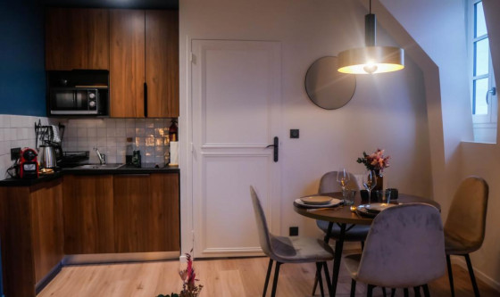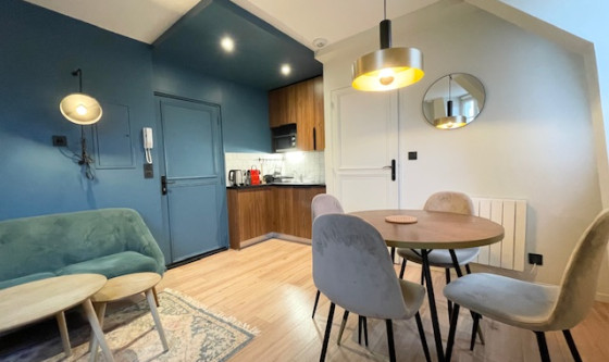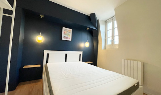 RENNES, A louer un T1 Bis de 22.89m² et 25m² au sol, au 3e étage, refait à neuf récemment. Il comprend un séjour avec une table avec les chaises, une armoire, un canapé, un coin cuisine entièrement améagé et équipé (plaques, frigo, micro-ondes), un rangement, une chambre séparée, une salle d'eau avec wc. Le chauffage électrique est individuel et l'eau froide est collective. « Les informations sur les risques auxquels ce bien est exposé sont disponibles sur le site Géorisques : www.georisques.gouv.fr » Disponible début décembre.