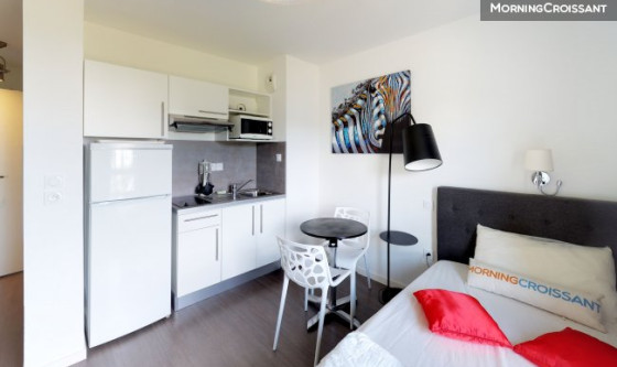 Cet appartement est situé dans une résidence sécurisée, située à l'arrivée du tram de St Herblain, collée à l'école Pigier. Un chargé de résidence et un agent de sécurité seront là sur place pour votre sérénité. Magnifique conception. L'appartement est très bien entretenu et moderne. Il est composé d'un espace cuisine en entrant, d'un espace nuit avec un lit en 120 et un bureau et d'une salle de bain avec douche. La cuisine est équipée avec tous les ustensiles. Une salle de bain avec douche est attenante à la chambre. L'appartement est équipé d'un accès wifi gratuit. Le linge de lit est fourni et changé à votre convenance. Cependant, PRÉVOYEZ VOS SERVIETTES DE BAIN car elles ne sont pas fournies. Vous disposerez gratuitement d'une place de parking extérieur suivant disponibilité. Si vous souhaitez bénéficier du parking privé de la résidence, le supplément est de 40€/mois (suivant disponibilité également). Lors de votre séjour vous pourrez profiter de tous les services de la résidence : - salle de fitness en libre accès - laverie payante avec machines à laver, sèche linge, fers et tables à repasser - salle de vie avec terrasse et vue sur lac. Vous pourrez y profiter de la tv câblée avec écran géant, du babyfoot en libre accès, et des distributeurs de boissons et confiseries - accès wifi gratuit dans toute la résidence Services payants en option : - location de TV : 1€ /jour (selon disponibilité)