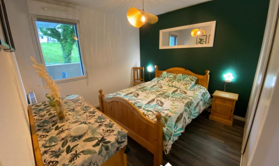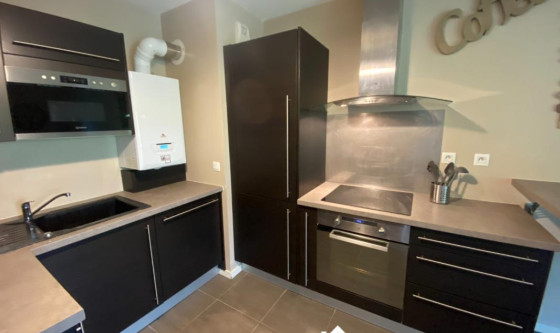 Appartement de 40m² situé à 2 min de l'échangeur de l'autoroute. Parking privé et fermé situé sous la résidence. Résidence avec ascenseur et local vélo. Entièrement meublé avec la vaisselle et électroménager. Balcon de 16m2. Une chambre avec lit de 140/190 Un salon avec canapé convertible de 140/190 Une salle de bain avec douche et WC. Cuisine équipée avec frigo/congélateur, four électrique, micro-onde, plaque à induction, hotte aspirante, machine à laver et lave vaisselle, toute la vaisselle pour cuisiner et manger. Résidence calme et proche des transports en commun et d'une zone commerciale. Location pour un étudiant, si colocation, la provision sur charge sera modifiée. Assurance logement obligatoire Updated on 19/11/2025 Mise à jour le 19/11/2025