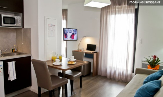Dans une résidence calme et sécurisée, parfaitement située à proximité du centre historique, des transports en commun et des commerces. Appartement de 28m² pour 4 personnes comprenant: - Séjour avec un canapé lit gigogne et 1 lit double - 1 bureau + chaise, table de chevet, - Coin cuisine avec frigidaire, micro-onde, hotte, vaisselle, plaques électriques, - Salle d'eau: WC, lavabo, douche Dans le cadre d'une location saisonnière, en plus du loyer mensuel, une taxe de séjour d'un montant qui varie par nuit et par personne, sera à régler directement auprès de la résidence.