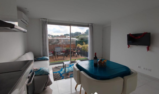 La Villa Harmony est implantée dans un HAMEAU dans la verdure et au calme. Piscine extérieure de 100 m² ouverte de mi-juin à mi-septembre terrain de tennis, mur d'entrainement de tennis, terrain de pétanque, table de ping-pong, pour vous distraire après une longue journée de travail. La Villa Harmony est située au calme dans un hameau idéeal pour 2 étudiants, à 100 m des commerces, à 1km du centre ville de Vallauris à 10 minutes de la Technopole de Sophia Antipolis et des ses grandes écoles ( MOURATOGLOU TENNIS ACADEMY, SKEMA 20 minutes en bus, ATMAN, POLYTECH, CESI, ESINSA, SUP'DE COM, DSTI etc...), à 17 minutes de l'Aéroport de Nice Cote d'Azur, à 5 minutes de l'entrée de l'autoroute, à 30 minutes de Nice , à 20 minutes de Cannes et à 5 Km de la plage, à 40 minutes de MONACO, à 1 heure de l'Italie. Votre appartement 2 pièces de 40 m² L'appartement est composé d'un séjour avec un canapé-lit convertible 2 couchages, d'une chambre avec un lit double en 160x200 cm. L' appartements dispose de la climatisation, d'une cuisine parfaitement équipée : lave-vaisselle, lave-linge, four micro-ondes grill, plaques vitrocéramiques, hotte aspirante, cafetière électrique, réfrigérateur avec partie congélateur. Salle de bains avec radiateur sèche-serviettes, wc Terrasse équipée d'un salon de jardin. Parking sécurisé Updated on 12/12/2025 Mise à jour le 12/12/2025