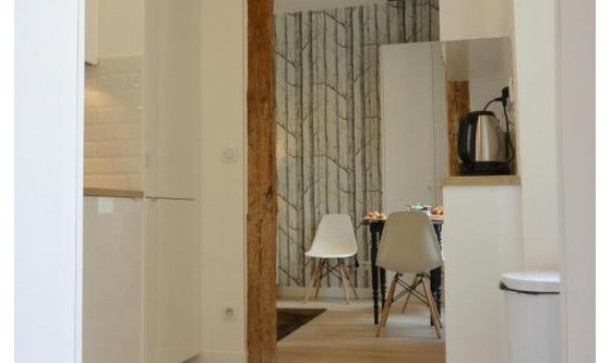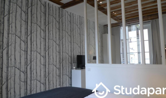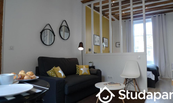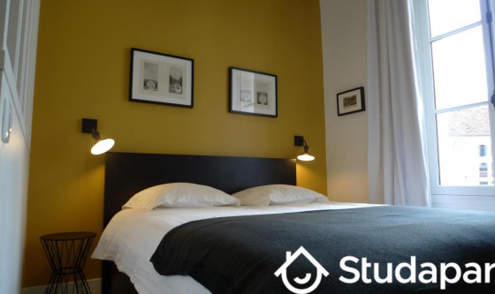 Charming flat of 2 rooms, furnished 33 m2, high class, renovated, with taste care, in Versailles, in a residential and historical district : district Saint Louis. On 1st floor, in an XVIII century building, on country yard, calm, luminous (East – South and North – West exposed) a beautiful view. Living room – meal corner for 4 persons, kitchen on living room, independent bed room with double bed and cupboard and independent WC and shower. Capacity : 2/3 persons This flat is a mix of ancient with modern comfort and charm. Living room : recently restored in black, white and yellow tones, apparent beams, furniture modern design high grade, original wooden floor, sofa bed (1 person) and dining room surface for 4 persons. Bedroom : quiet on court yard , double bed (160 x 200 cm). Shower room : a shower tray 80 x 80 cm, a basin and WC The following charges are included : * Water and charges of building are included The following charges are NOT included in the charges : +150 Euros cleaning fees for departure, you pay once at the entrance. The following charges are NOT included : * A monthly cleaning is done for €50 per month * Electricity is charged separately at cost on the basis of actual consumption. • Deposit guarantee to be paid at the entrance Updated on 14/10/2025 Mise à jour le 14/10/2025