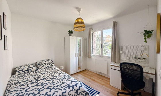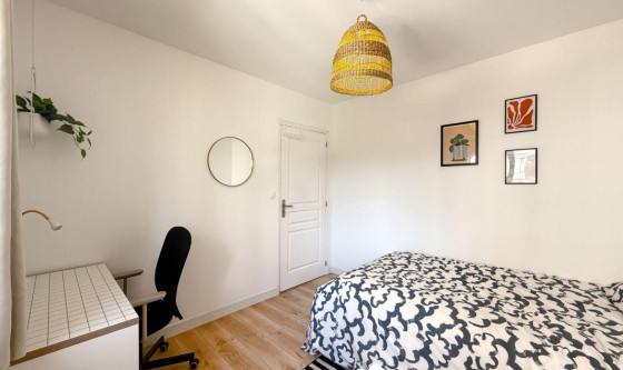 ##Space Découvrez une chambre privative confortable et meublée au sein d'une maison lumineuse de 66 m² en colocation, situé à Villeurbanne. La maison compte 3 chambres au total, partagées par les colocataires. Idéale pour une personne, cette chambre vous offre un espace calme tout en profitant de pièces communes conviviales avec les autres résidents. Niché dans un quartier pratique et bien desservi, la maison se trouve à proximité des commerces, restaurants, transports en commun, à seulement 20 minutes du centre de Lyon. Votre chambre privative comprend : Un lit double confortable Un espace de travail avec un bureau Rangements Espaces communs Une cuisine équipée : plaques de cuisson, hotte, four, micro-ondes, réfrigérateur, bouilloire, toaster, cafetière, ustensiles de cuisine et un bar avec des chaises hautes Un balcon avec table Une salle d'eau avec douche et lavabo Une buanderie Un WC séparé Accès au jardin de la maison avec BBQ Un garage pour ranger les vélos Les points forts de cet appartement : Connexion Internet haut débit incluse Espaces communs confortables et bien équipés Commerces et restaurants à proximité immédiate Accès rapide aux transports en commun À seulement 20 minutes du centre de Lyon Eligible au Bail Mobilité ## Access Vous aurez accès à l'ensemble de la maison pour profiter d'un séjour en toute autonomie. ## Interaction Notre équipe reste disponible par téléphone ou SMS de 9h à 23h pour toute question. Nous faisons de votre confort une priorité et nous sommes là pour garantir une expérience fluide et agréable. ## Neighborhood Situé dans un quartier agréable et résidentiel de Villeurbanne, cet appartement offre un cadre calme et pratique à proximité des transports en commun et de nombreux commerces. Idéal pour découvrir Lyon tout en profitant d'un environnement local convivial. Vous serez proche du centre de Lyon, parfait pour des balades ou des activités en plein air, ainsi que de commerces de proximité pour vos besoins quotidiens. Le quartier combine tranquillité, commodité et richesse culinaire, avec de nombreux restaurants et cafés à découvrir. Voici quelques suggestions de restaurants à proximité : La Gaité – Cuisine traditionnelle française, plats généreux et ambiance conviviale. Tranche : €€ Le Kashmir – Restaurant indien, plats épicés et généreux. Tranche : €€ TERRASSE D'ANGKOR – Cuisine cambodgienne et ambiance chaleureuse. Tranche : €€ ##Transit L'appartement bénéficie d'un accès pratique aux transports en commun, facilitant vos déplacements dans Lyon et ses environs : Métro A – Cusset : à 4 min à pied, accès direct au centre-ville. Plusieurs lignes de bus à proximité, facilitant vos trajets dans Villeurbanne et Lyon. Si vous voyagez en voiture, des parkings publics sont disponibles à proximité, avec un accès rapide aux grands axes routiers. Accès aéroports : Lyon-Saint Exupéry : environ 25 min en voiture ou 35 min en transports en commun. ##Notes Cette réservation implique le versement d'une caution ainsi que la signature d'un contrat. Ces dispositions garantissent la sécurité et la transparence de votre séjour (tous les détails seront précisés lors de la réservation) Updated on 18/11/2025 Mise à jour le 18/11/2025