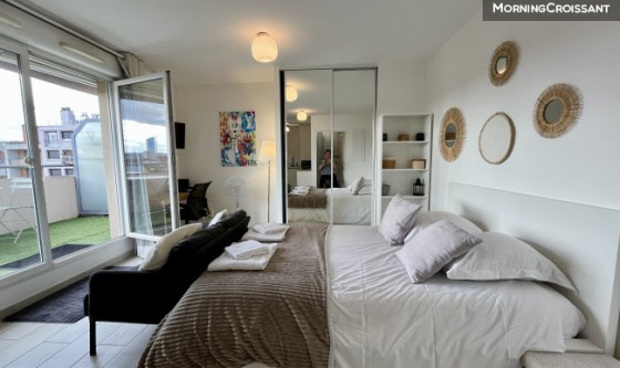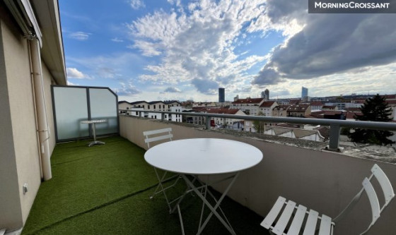 Situé au 5ième et dernier étage d'un immeuble récent (avec ascenseur), proche du métro République, à 2 arrêts de Lyon 6 et du parc de la tête d'Or, vous séjournerez ici au calme et bénéficierez d'une magnifique vue sur les toits lyonnais et la basilique de Fourvière. Le studio a été rénové très récemment, est très bien équipé, confortable et bénéficie d'une magnifique terrasse de 13m2.