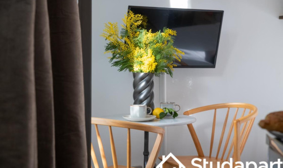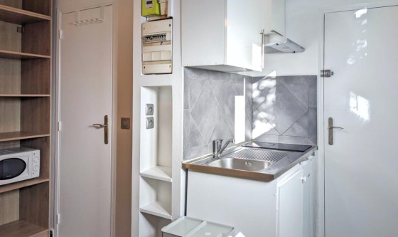 Petit studio au sein d'un immeuble calme sur cour. Situé au RDC avec une vue sur le jardin. Entièrement meublé et équipé. Lit double, kitchenette, douche, wc. Internet inclus dans les charges. TV. Updated on 04/12/2025 Mise à jour le 04/12/2025