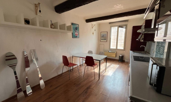 Aix-centre historique , appartement meublé de type 2 de 57.32 m2 loi Boutin situé au deuxième étage de l'immeuble sans ascenseur. Il se compose d'une entrée, séjour avec cuisine américaine entièrement équipée, une chambre, une salle d'eau et wc séparés. Le chauffage est électrique.