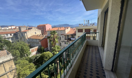 Immo de Corse AIACCIU vous propose à la location un grand F2 de 61.34 m² situé en plein coeur du Cours NAPOLEON. La résidence est pourvue d'un ascenseur, au calme et donnant sur les jardins, ce 2 pièces au 5ème étage offre de beaux volumes, il dispose d'une entrée avec placard, une cuisine, un cellier, un séjour donnant sur un balcon, un dégagement avec rangement, une salle de bains, une grande chambre avec balcon. Eau chaude et chauffage collectif. Provision de consommation comprise dans le loyer. Les informations sur les risques auxquels ce bien est exposé sont disponibles sur le site Géorisques : www. georisques. gouv. fr