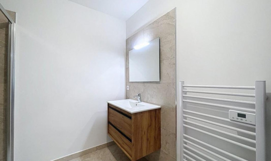 MAX IMMOBILIER propose à la location cet appartement type T2 de 42,2m², neuf, situé au 2ème étage sur 6 avec ascenseur. Il se compose d'une entrée, donnant sur le séjour cuisine-équipée de 26m². Une chambre de 11,5m², une salle d'eau de 5,8m² avec WC. Une terrasse de 8,5m² et une place de stationnement en extérieur complètent le lot. PRESTATIONS DU F2 ALTHEA : Carrelage Peinture Faïence Menuiserie alu double vitrage Convecteurs électriques Clim réversible séjour Chauffe-eau thermodynamique Cuisine équipée. COMPOSITION DU F2 ALTHEA : PièceSuperficie en m² R+2 Hall d'entrée2M² Séjour17,9M² Cuisine5M² Chambre 111,5M² Salle de bain5,8M² TOTAL HABITABLE42,20M² Terrasse8,5M² ELEMENTS FINANCIERS : LOYER : 830€ C.C (Dont 30 €uros de charges locatives incluses dans le loyer avec régul annuelle). ORDURES MENAGERES : 10 €/mois DEPOT DE GARANTIE : 800€ HONORAIRES : 548 € (Dont 126 € frais d'état des lieux inclus). DPE : A GES : A DISPONIBLE : immédiatement.