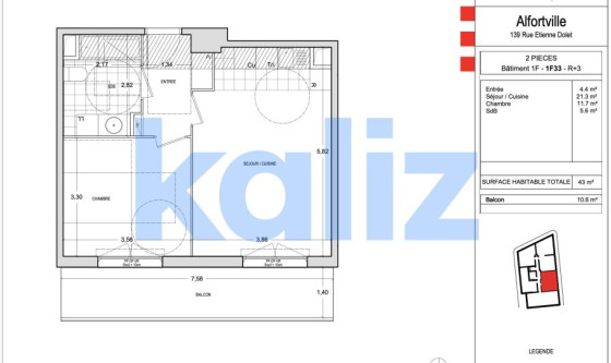 Rue Ambroise Croizat, à proximité direct de la station Le Vert de Maisons sur le RER D. Au 3ème étage avec ascenseur, un appartement 2 pièces de 43m2 dans un immeuble récent comprenant : une entrée avec placard, un séjour avec cuisine ouverte aménagée et semi-équipée, et donnant sur un beau balcon, une belle chambre, et une salle de bains avec wc. Chauffage et eau chaude collectifs donc inclus dans les charges. Une place de parking complète ce bien. LIBRE MI DECEMBRE ! Les informations sur les risques auxquels ce bien est exposé sont disponibles sur le site Géorisques : www.georisques.gouv.fr