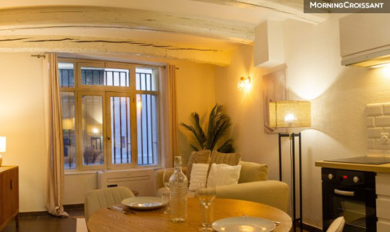 Profitez du centre historique d'Avignon dans cet appartement confort avec cour privative. L'appartement dispose d'un séjour avec cuisine ouverte équipée et coin repas, d'une chambre, d'un grand placard avec machine à laver et d'une salle de bain avec wc. La cour privative est un plus pour les petits déjeuners en terrasse. Les petit +: - Linges de lit et serviettes fournis - Cour intérieure - Climatisation dans le séjour - Nespresso - Wifi fibre Le logement - Situé au rez-de-chaussée - Stationnement possible aux alentours du logement - Cour intérieure privée de 10m2 - L'appartement dispose d'une climatisation dans le séjour uniquement Frais d'agence charge locataire 250€ + 3€/m2 d'état des lieux d'entrée Gestion assurée par l'agence immobilière Capsule Corp, spécialisée en location de courte et moyenne durée: ménage professionnel, linge de qualité hôtelière, grande réactivité aux messages.