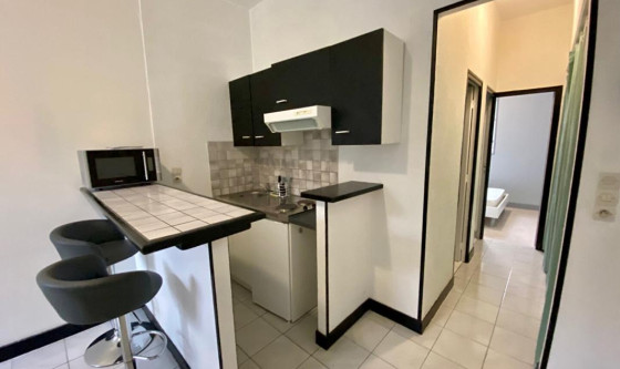 A proximité immédiate de la gare et du centre-ville, à louer : agréable appartement deux pièces comprenant un séjour avec cuisine aménagée et équipée (frigo, micro-onde, plaque de cuisson, hotte), ouverte et dotée d'un bar. Un couloir avec son dressing dessert une salle de bains, des WC séparés ainsi qu'une chambre. L'appartement dispose également d'une place de parking. Le tout est meublé et en très bon état. Contacter Honorine PEAN au zéro sept 83 25 32 50 pour obtenir des informations complémentaires ou visiter.