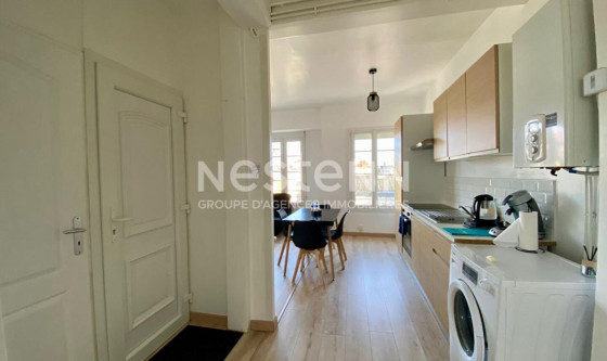 Idéalement situé à proximité de la gare et du centre-ville, cet appartement lumineux offre une spacieuse entrée avec placard, une cuisine aménagée et équipée ouverte sur un séjour, ainsi qu'un dégagement desservant une chambre et une salle d'eau avec WC. Contacter Honorine PEAN au zéro sept 83 25 32 50 pour obtenir des informations complémentaires, ou visiter.